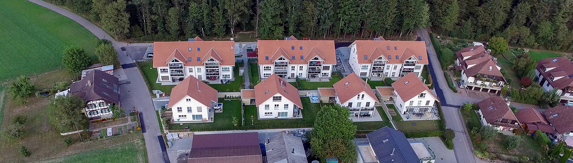 3 MFH mit je 6 Eigentumswohnungen (3.5 - 5.5 Zimmerwohnungen), 4 EFH und gemeinsamer Einstellhalle für 36 Fahrzeuge