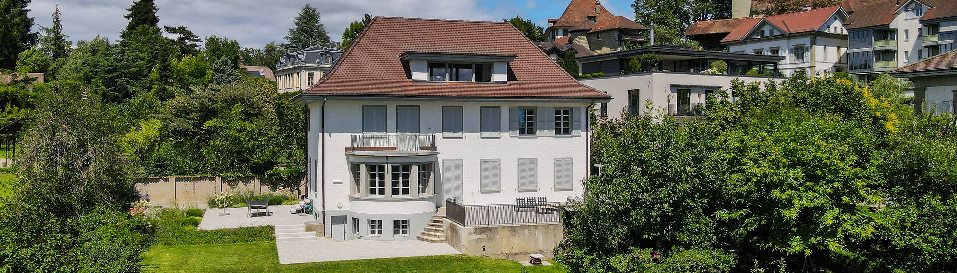 Sanierung und Erweiterung einer erhaltenswerter Villa in ein Doppeleinfamilienhaus.
