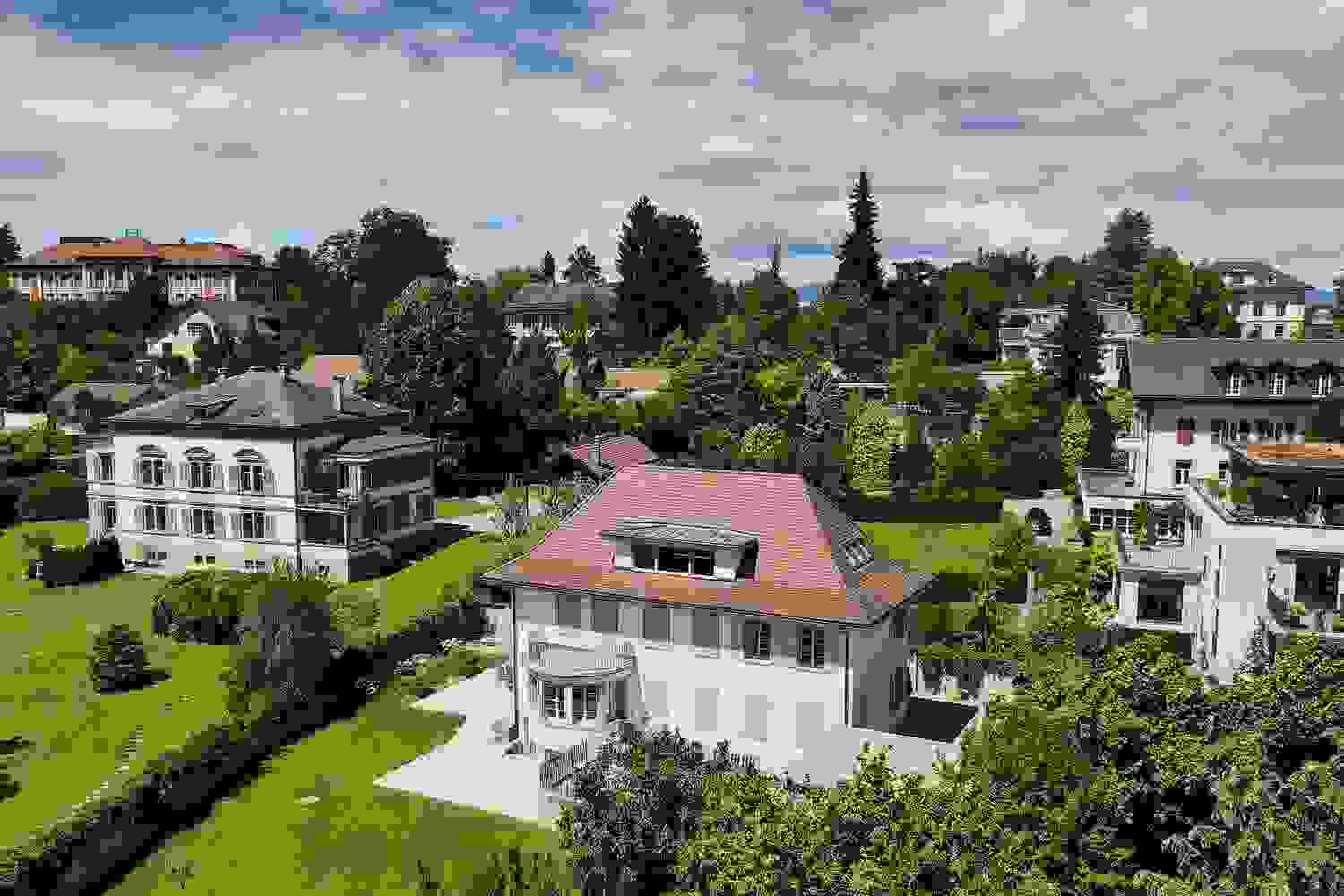 Sanierung und Erweiterung einer erhaltenswerter Villa in ein Doppeleinfamilienhaus.